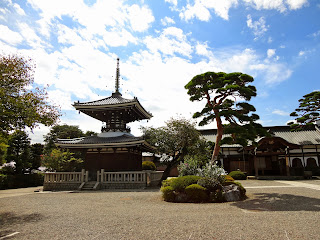 I took my temple stamp album into the main hall. The monk in charge did the calligraphy while I looked around the main hall. There are lots of very old statues, and there was also a modern-looking oil painting of Kannon riding on a dragon. After giving me the temple stamp, the monk told me a few things about the temple's history. There is a group of statues on either side of the main altar, which the monk explained, are all the forms of Kannon. These statues were commissioned by Keshoin after the death of her son, when she signaled the end of her worldly life by cutting her hair. Some of her hair was put inside each of the statues. These were dedicated in the hope that her son would soon reach enlightenment. Motherly love!